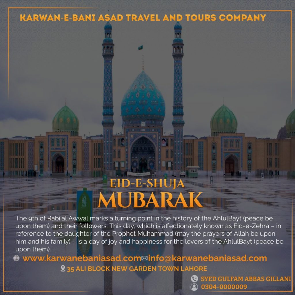 PLAN YOUR SPIRITUAL JOURNEY Start Experience OUR PROPOSALSUMRAH PACKAGES Umrah-e-Rajabia Umrah-e-Shabania ZIYARAT PLACES IRAN IRAQ SYRIA Discover View All Packages IRAN IRAQ SYRIAZIARATKARWAN-E-BANI ASAD OFFERS YOU ZIARAT TO HOLY PLACES OF IRAN IRAQ AND SYRIA. $1250 CONTACT USFOR BOOKING+92 304 0000009 OUR PROPOSALSOUR PACKAGES Detail Detail Detail Detail Detail Detail